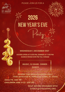 We invite you to join St. Hagop Armenian Church in the Shahnasarian Hall for a New Year’s Eve celebration!  Click here to make online ticket purchase . You may also pre-pay by check made out to St. Hagop, memo: ‘New Years’. Please contact Lusine Sahakyan at events@sthagopfl.org with questions.