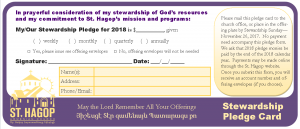 With our transition away from dues paid membership, St. Hagop relies totally on the stewardship of our parishioners to continue our mission and programs at St. Hagop Armenian Church. We hope you will join the over 100 parishioners who have made a confidential pledge commitment to support St. Hagop regularly through their stewardship. You may make payments on your 2018 pledge here with any credit card. Just enter the amount, click “add to cart,” then “view cart” to enter info and checkout. St. Hagop uses secure checkout to protect your information!